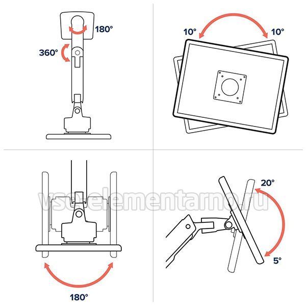 Степени свободы крепления Ergotron HX Desk Monitor Arm with VHD Pivot (45-693-224):