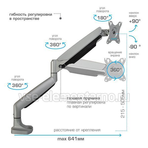 Настольный наклонно-поворотный кронштейн с регулировкой высоты для мониторов с диагональю до 45 дюймов.