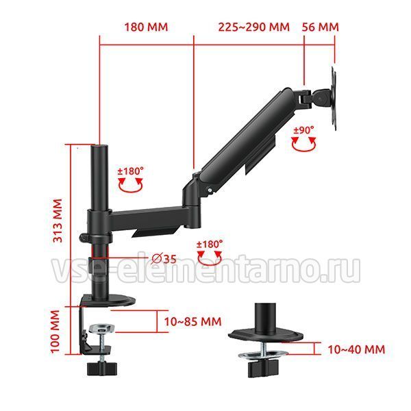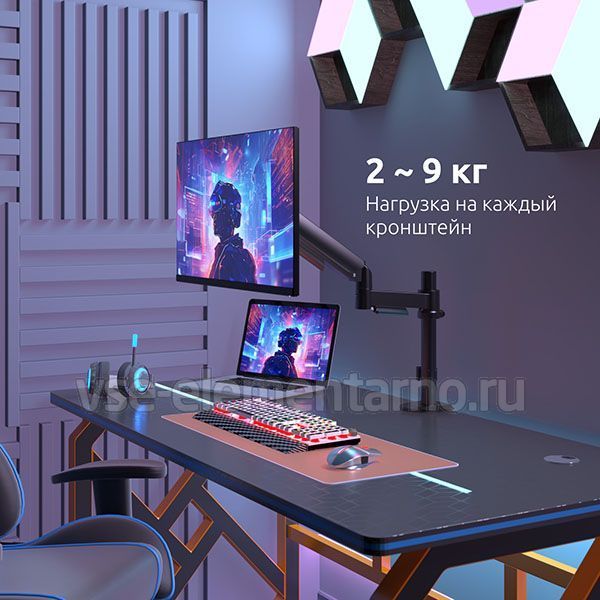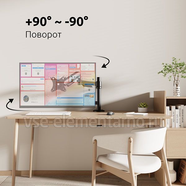 Настольный наклонно-поворотный кронштейн с регулировкой высоты для мониторов с диагональю от 17 до 35 дюймов.