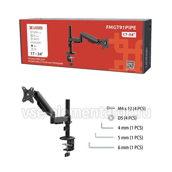 Настольный кронштейн Uniteki FMGT91PIPE идеально подходит для всех мониторов с диагональю экрана от 17 до 35 дюймов (43-89 см) и весом от 2 до 9 кг. Радиус изгиба монитора от 4000R до 1800R.