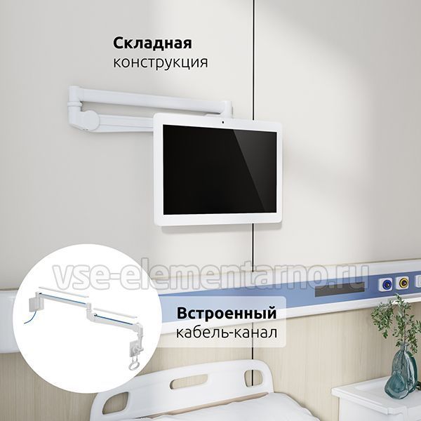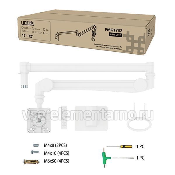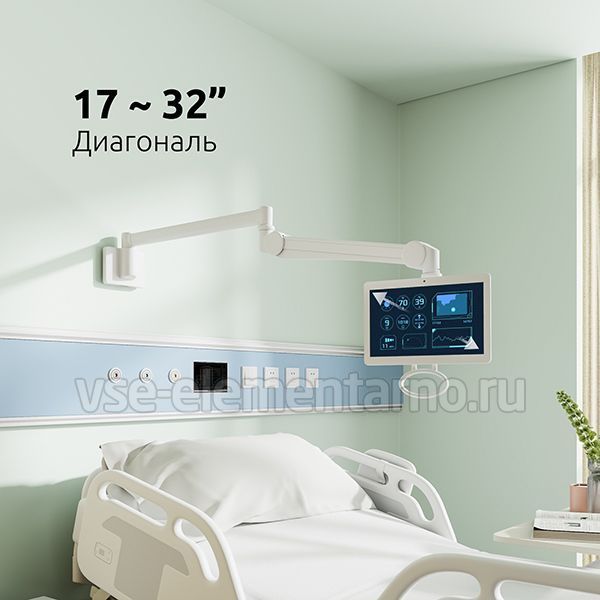 Настенный наклонно-поворотный кронштейн для телевизора или монитора диагональю 17-32 дюйма (44 ~ 82 см.) с размерами VESA 75х75, 100х100, в белом матовом цвете Uniteki FMG1732, для установки в профильных и других учреждениях, а так же для использования в домашних или офисных условиях.