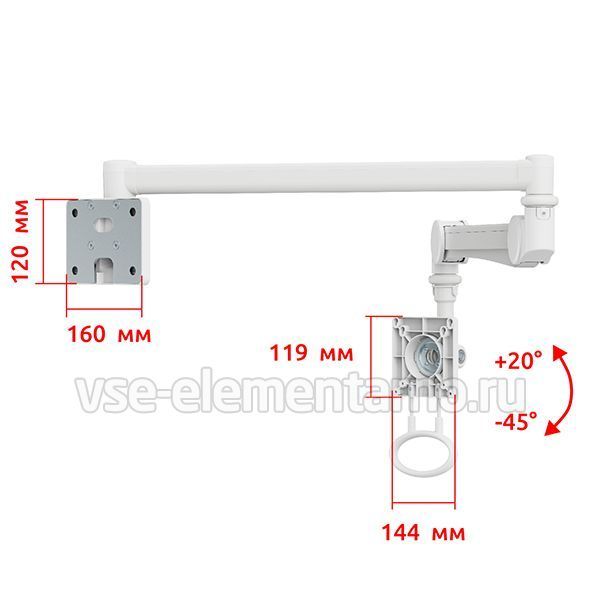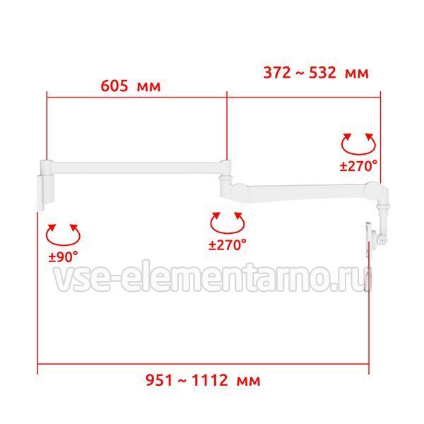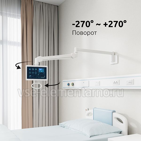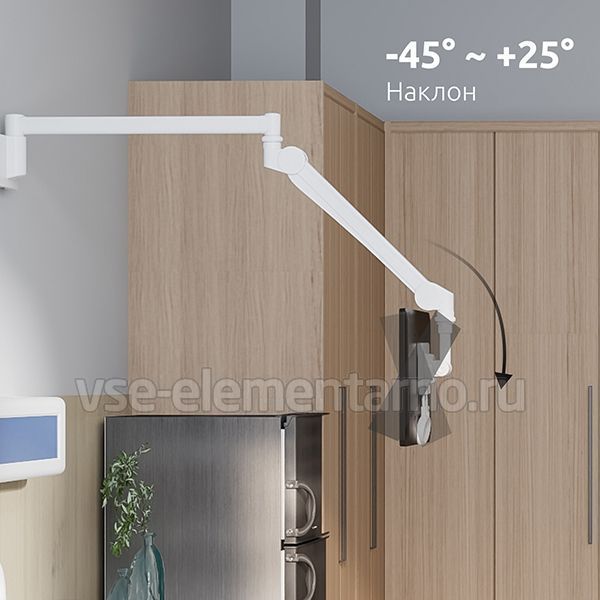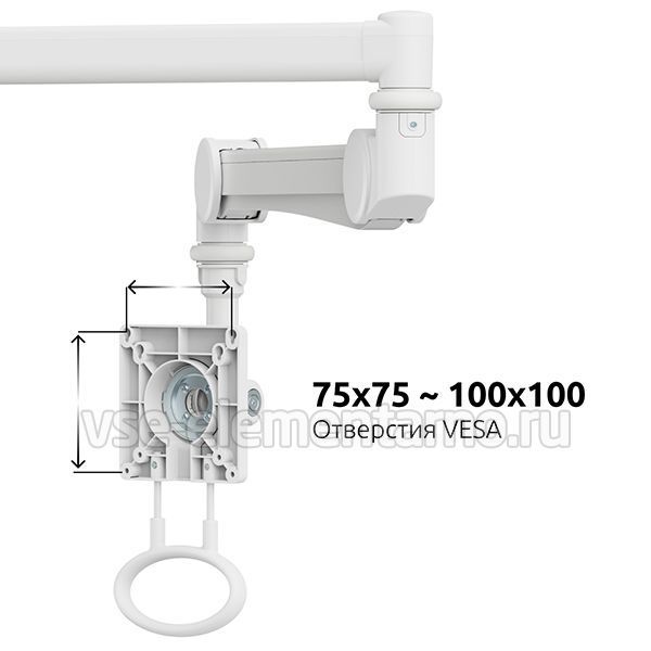 Настенный поворотно-наклонный кронштейн c регулировкой по высоте и поворотом на 270°. Рекомендован для мониторов со стандартом 75х75, 100х100 мм., весом от 2 до 4 кг.