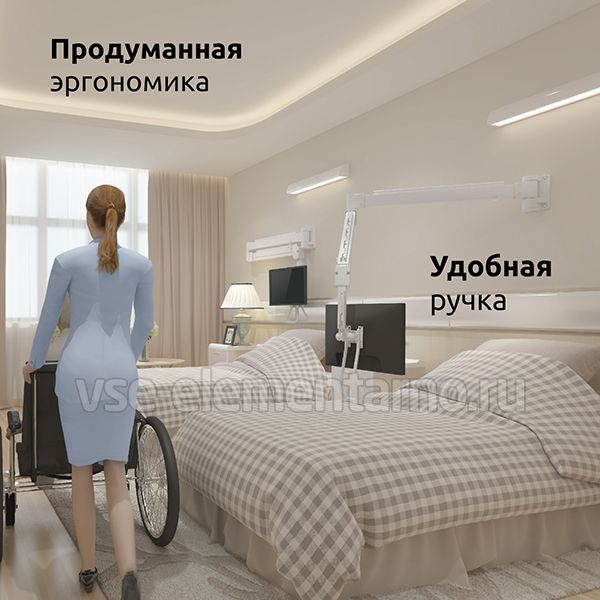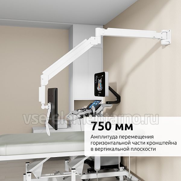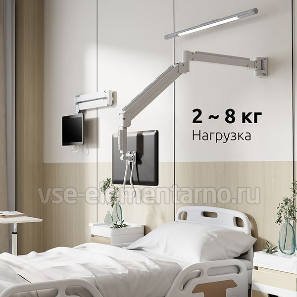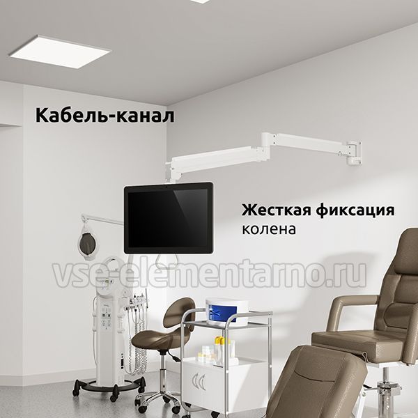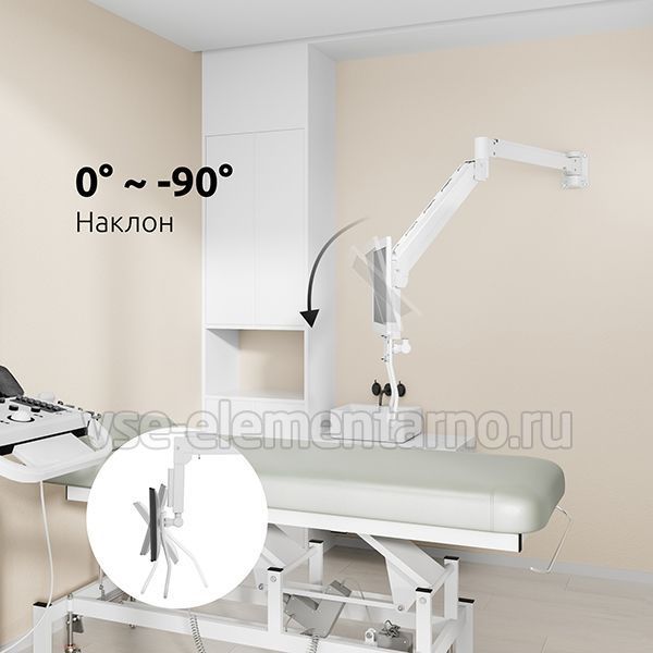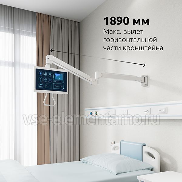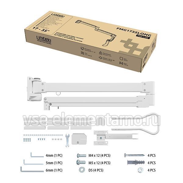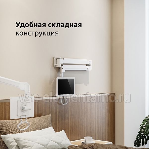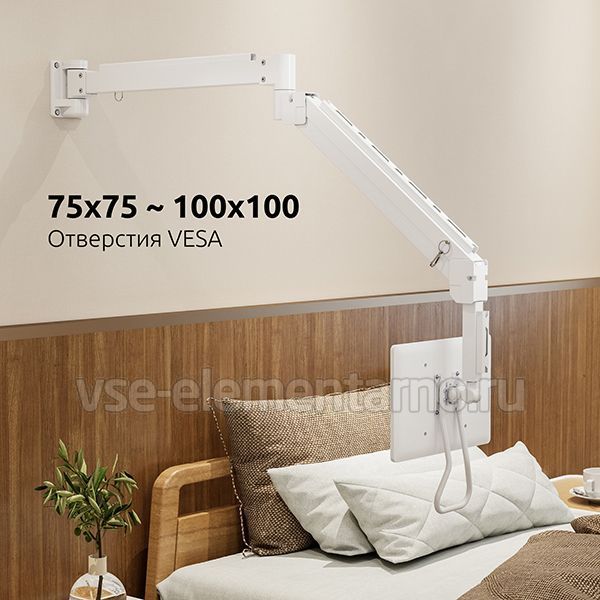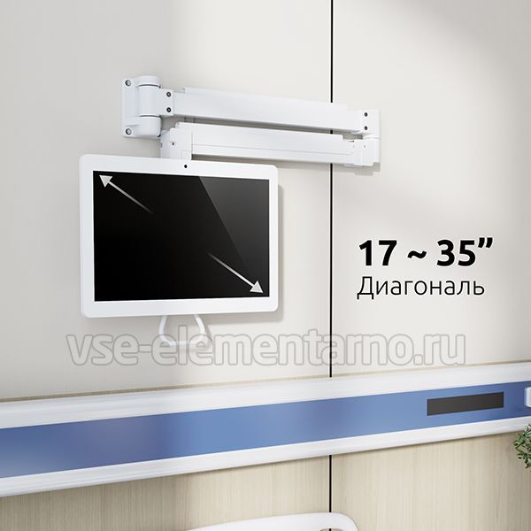 Настенный наклонно-поворотный кронштейн для телевизора или монитора диагональю 17-35 дюйма (44 ~ 89 см.) с размерами VESA 75х75, 100х100, в белом матовом цвете FMG1735LONG, для установки в профильных и других учреждениях, а так же для использования в домашних или офисных условиях.