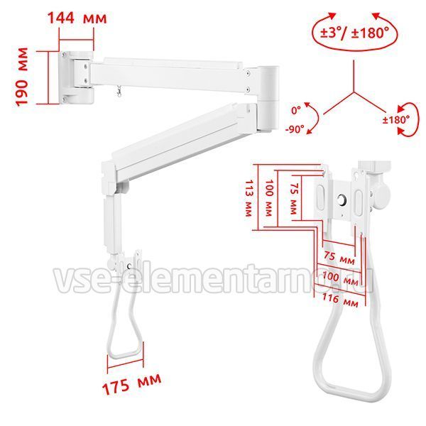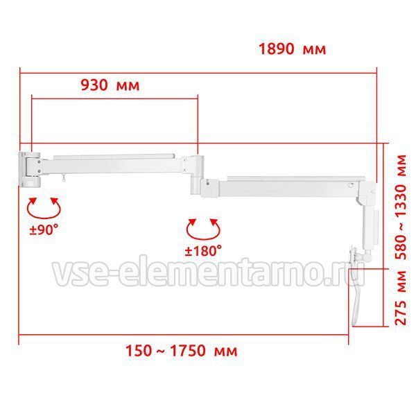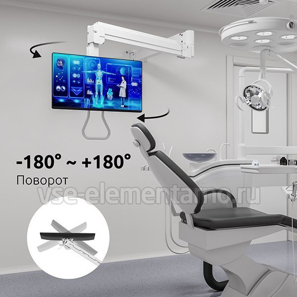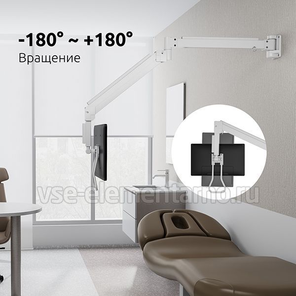 Настенный поворотно-наклонный кронштейн c регулировкой по высоте и поворотом на 180°. Рекомендован для мониторов со стандартом 75х75, 100х100 мм., весом от 2 до 8 кг.