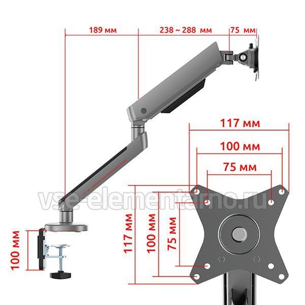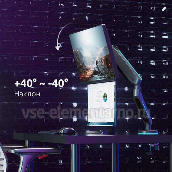 Настольный наклонно-поворотный кронштейн с регулировкой высоты для мониторов с диагональю от 17 до 35 дюймов.