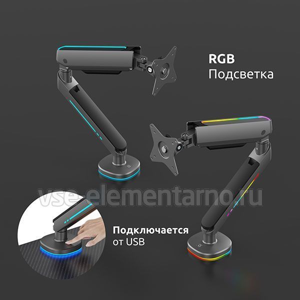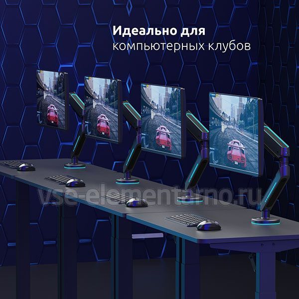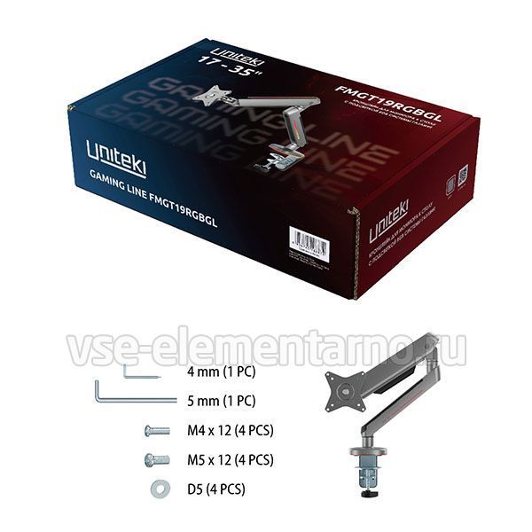 Настольный кронштейн Unieki FMGT19RGBGL идеально подходит для всех мониторов с диагональю экрана от 17 до 35 дюймов (43-89 см) и весом от 2 до 9 кг. Радиус изгиба монитора от 4000R до 1800R.