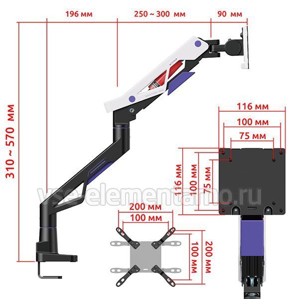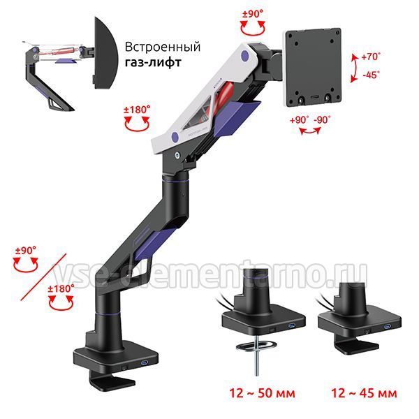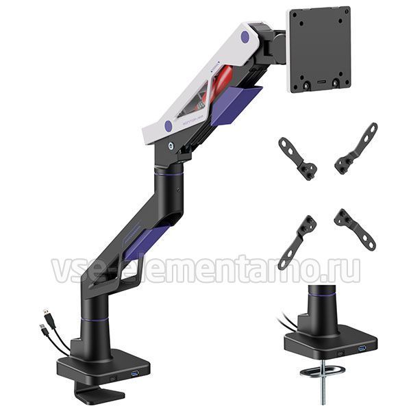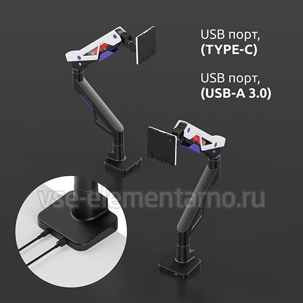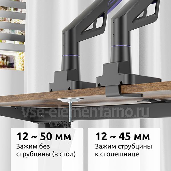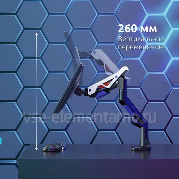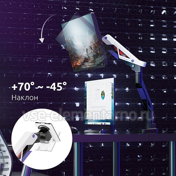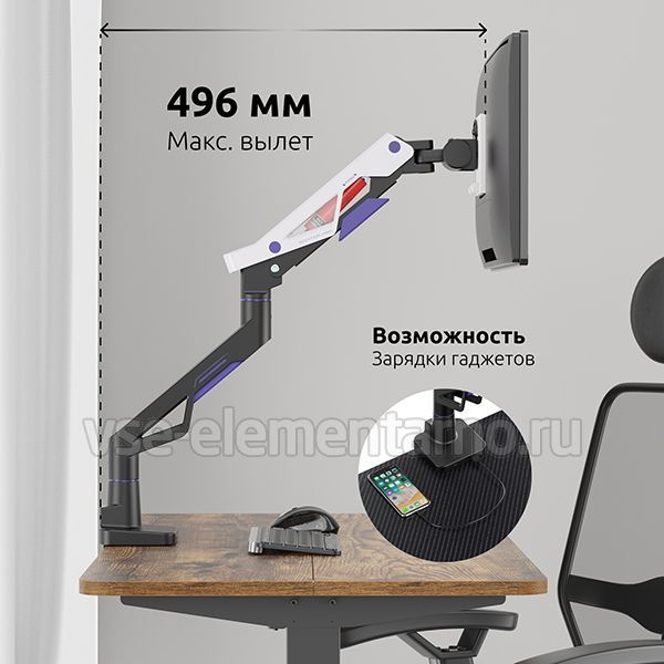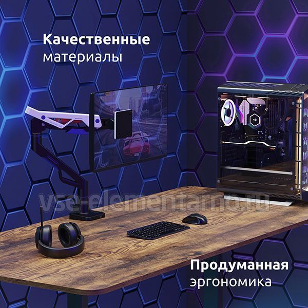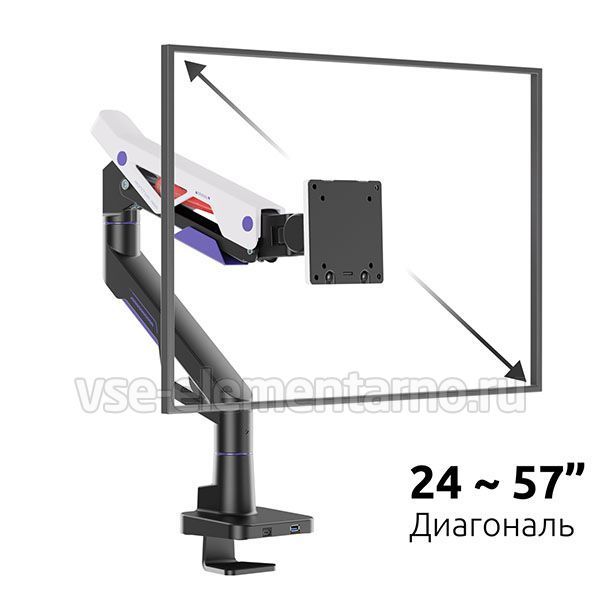 Настольный наклонно-поворотный кронштейн с регулировкой высоты для мониторов с диагональю от 24 до 57 дюймов.