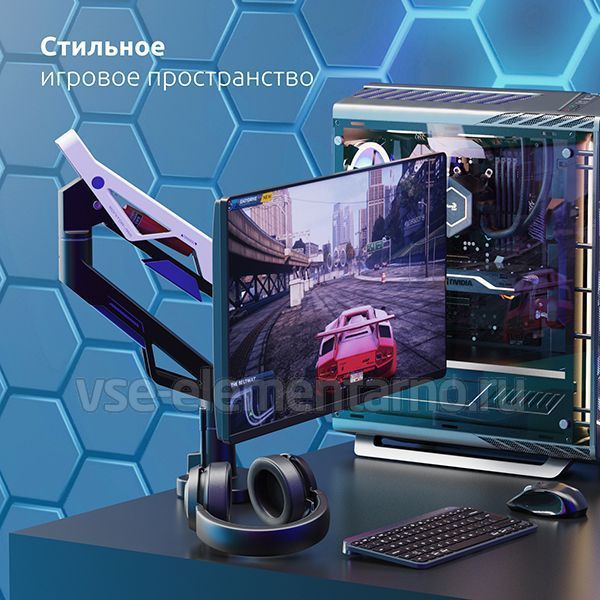 Стильный, геймерский дизайн, алюминиевый корпус с кабель-каналами из прочного ABS пластика, удобно расположенная кнопка для управления RGB подсветкой и быстросъемная пластина VESA. Комплектом предусмотрено 2 х USB порта.