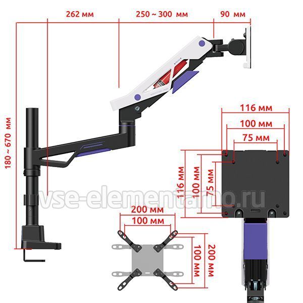 Крепежные отверстия соответствуют стандартам VESA 75x75 мм и 100x100 мм.