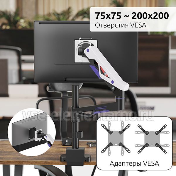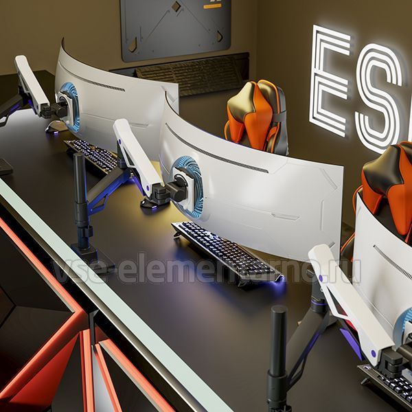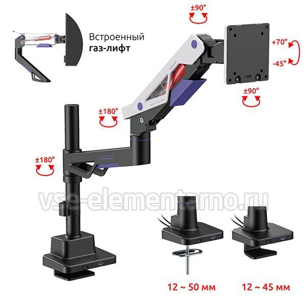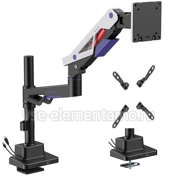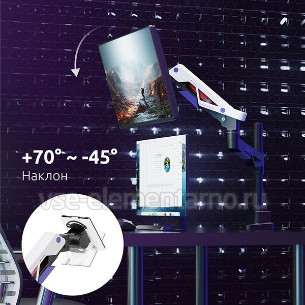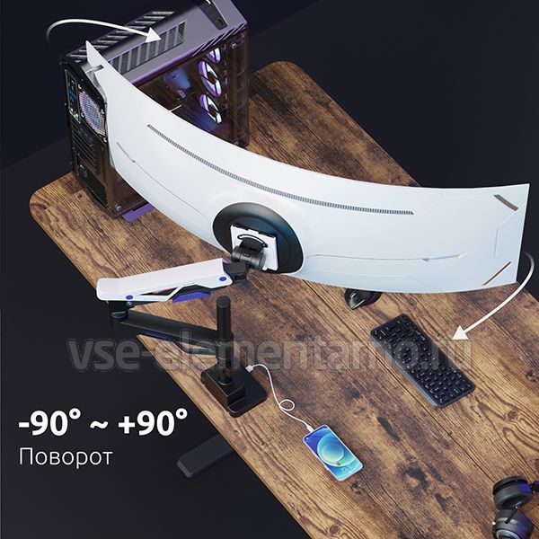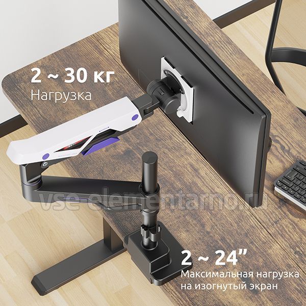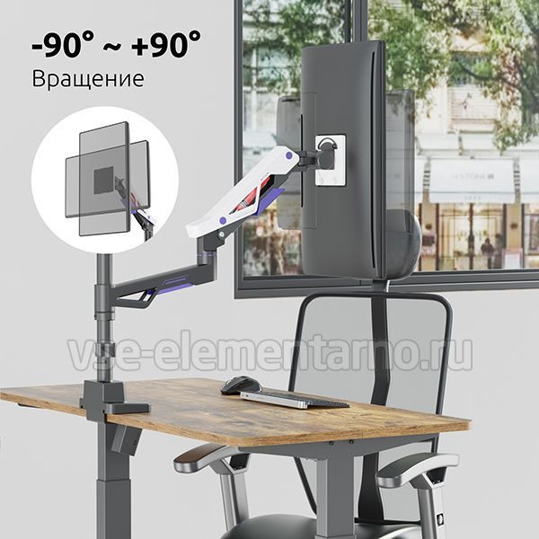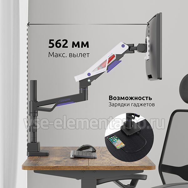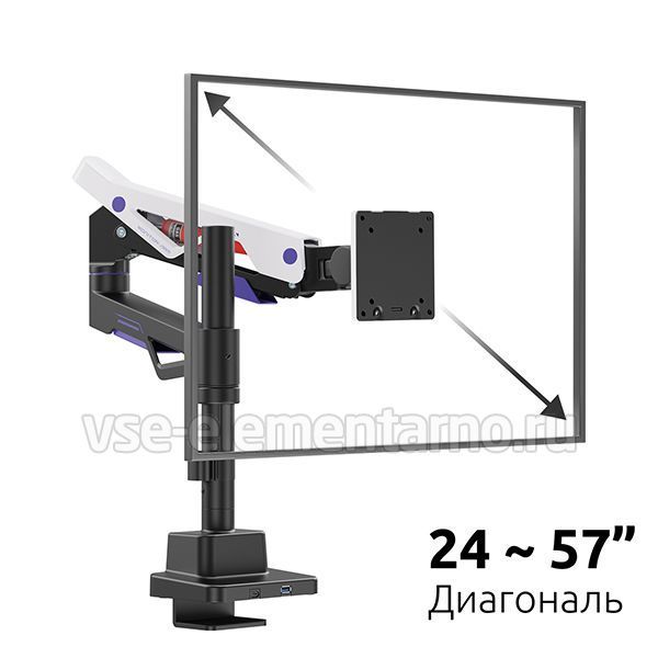 Настольный наклонно-поворотный кронштейн с регулировкой высоты для мониторов с диагональю от 24 до 57 дюймов.