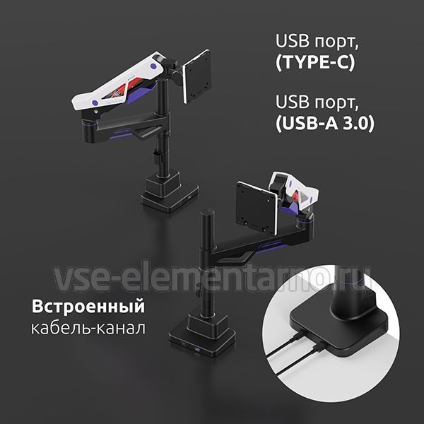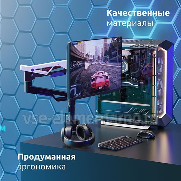 Стильный, геймерский дизайн, алюминиевый корпус с кабель-каналами из прочного ABS пластика, удобно расположенная кнопка для управления RGB подсветкой и быстросъемная пластина VESA. Комплектом предусмотрено 2 х USB порта.