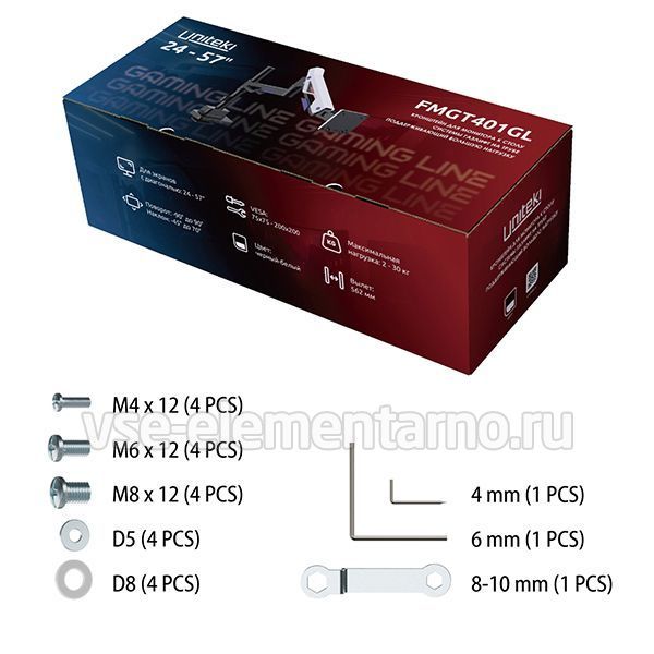 Настольный кронштейн Uniteki FMGT401GL идеально подходит для всех мониторов с диагональю экрана от 24 до 57 дюймов (61-145 см) и весом от 2 до 30 кг (на изогнутый экран от 2 до 24 кг). Радиус изгиба монитора от 4000R до 1800R.