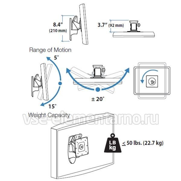 Степени свободы крепления Ergotron LX HD Wall Mount Pivot (45-269-009):