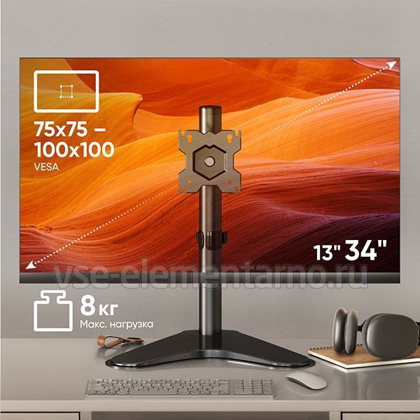 Настольный поворотно-наклонный кронштейн для мониторов с диагональю до 34 дюймов.