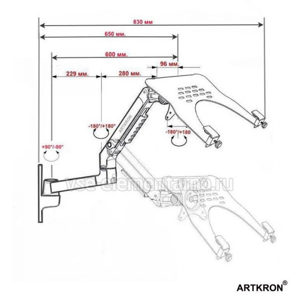 Настенный кронштейн ARTKRON ART-W2 рассчитан ноутбуков, весом от 3 до 10 кг. Кронштейн ART-W2 поможет вам организовать рабочее место за счёт возможности придания ноутбуку множества степеней свободы.