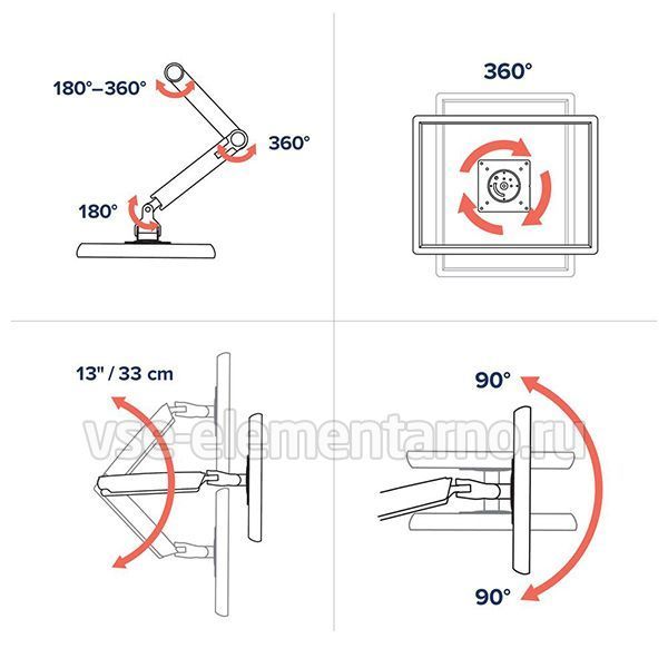 Степени свободы крепления Ergotron LX Dual Side-by-Side Arm (45-496-224):