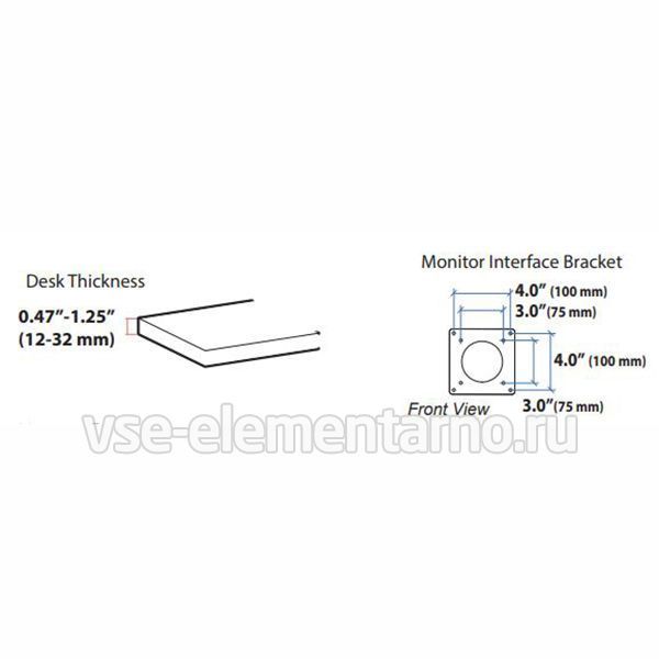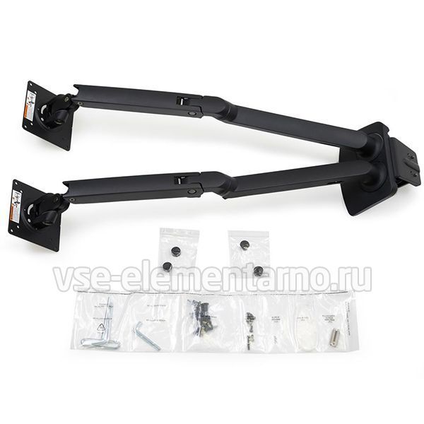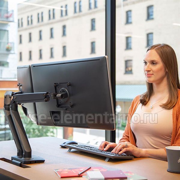 Настольный панорамный поворотно-наклонный кронштейн для двух мониторов с диагональю до 24 дюймов включительно c возможностью регулировки по высоте.