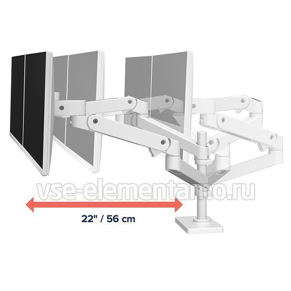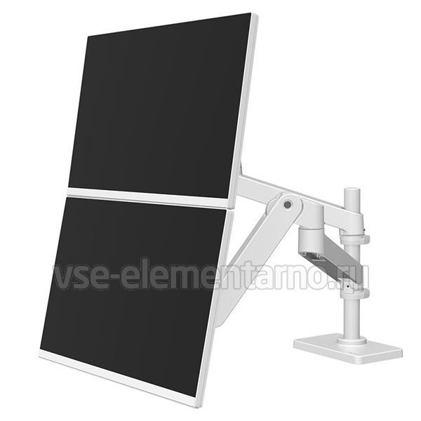 Настольный вертикальный кронштейн в белом цвете для двух мониторов с диагональю до 24 дюймов включительно c возможностью регулировки по высоте.