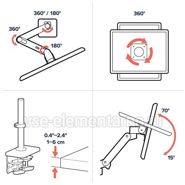 крепление поворачивается на 360° вправо/влево;