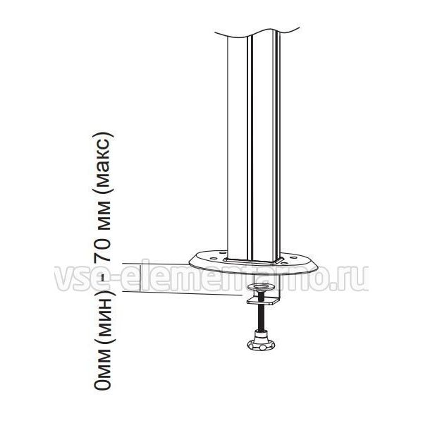 Настольный кронштейн 2MVESA Titanium 121 рассчитан на установку на любых столах и поверхностях, толщиной не более 70 мм, двух телевизоров или мониторов диагональю от 10" до 32" одновременно.