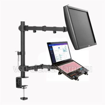 Настольный поворотно-наклонный кронштейн для монитора и ноутбука/планшет, для размещения друг рядом с другом.