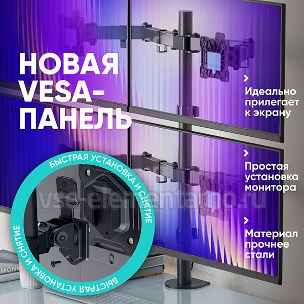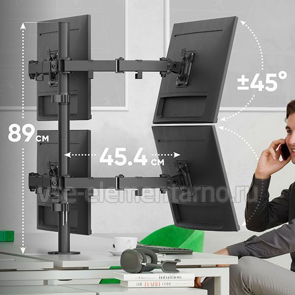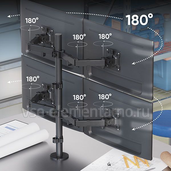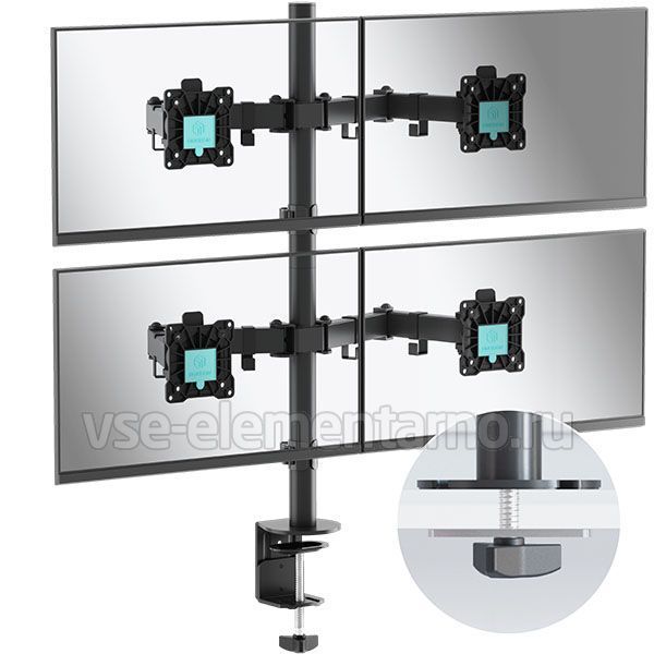 Настольный панорамный поворотно-наклонный кронштейн для четырех мониторов с диагональю до 32 дюймов с креплением за край стола.