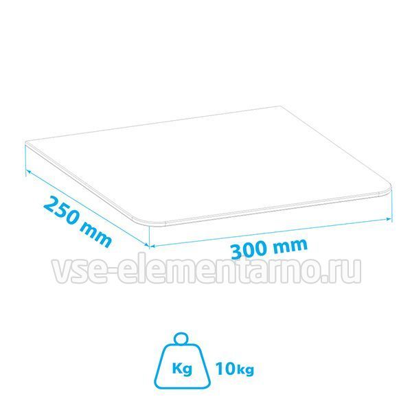 Полка выполнена из закалённого стекла и имеет закруглённые края.