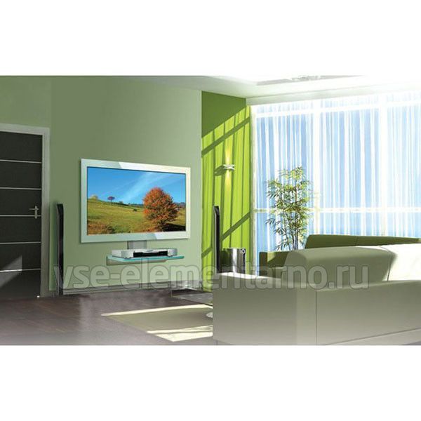 Настенный кронштейн для видео и аудиоаппаратуры весом до 12 кг со стеклянной полкой.