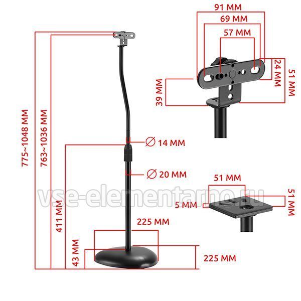 Конструкция стоек Uniteki ST42SPEAKER предназначена для установки динамиков (мониторов) на полу.