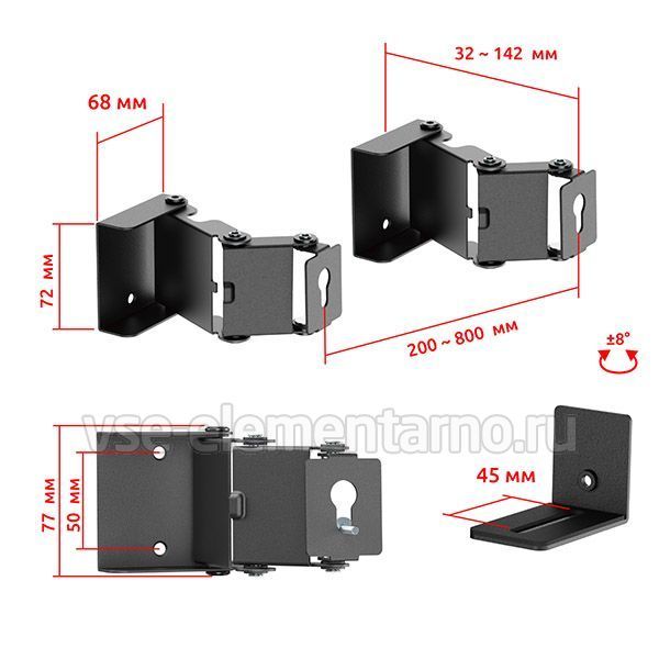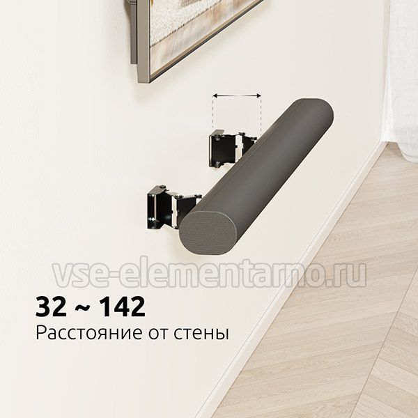 Крепление SMS16011DUAL позволяет, при полной сборке, повернуть от стены саундбар или колонки на +8°~-8°, а так же, при не полной сборке, фиксированно закрепить саундбар на стену.