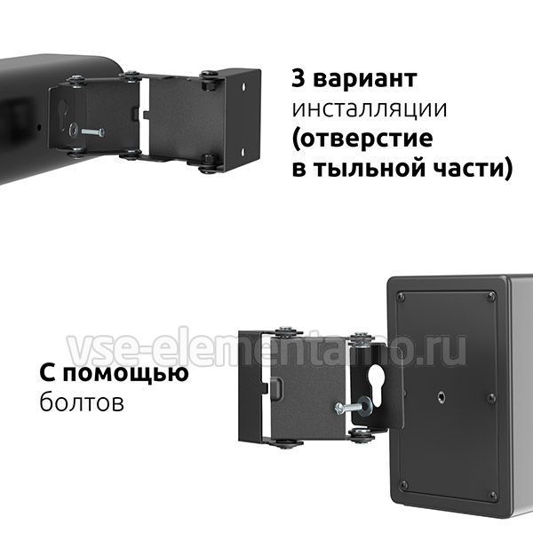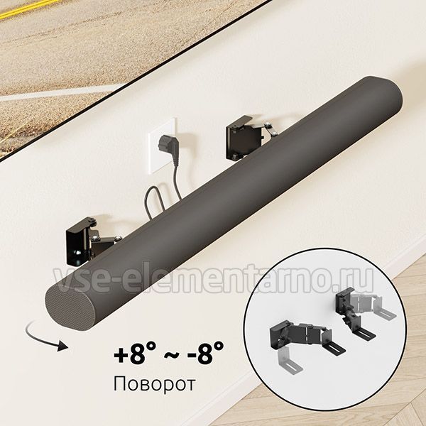 Кронштейн для саундбара поворотный, с несколькими вариантами крепления саундбара к кронштейну и двумя вариантами инсталляции к стене.