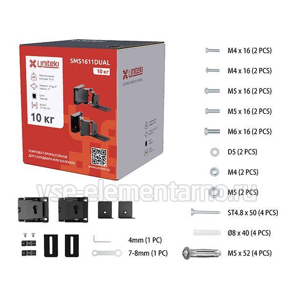 Uniteki SMS1611DUAL - это крепление, способное удержать саундбар или колонки весом, вплоть до 10 кг.