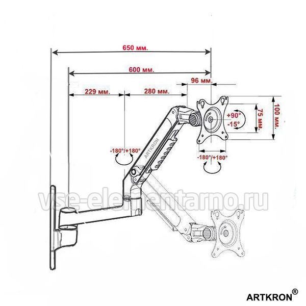 Степени свободы крепления ARTKRON ART-W243 DUO: