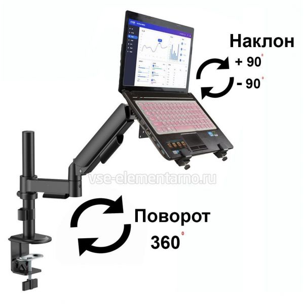 Настольный наклонно-поворотный кронштейн с регулировкой высоты + площадка держатель крепление для ноутбука ARTKRON Shelf-H91. Универсальное крепление для ноутбука ARTKRON Shelf-H91 устанавливается как дополнительный аксессуар на кронштейны для мониторов. Площадка ARTKRON Shelf-H91 даёт возможность установить ноутбук на кронштейн. За счет регулирующих рычажков подойдет для ноутбука от 10 до 16 дюймов. Безопасная и надежная установка - зажимы с силиконовыми накладками, предотвращающие царапины и повреждения ноутбука. Кронштейн ARTKRON Shelf-H91 предназначен для лёгкой установки на столешницу стола дома или в офисе. Преимущества настольного кронштейна ARTKRON Shelf-H100:
