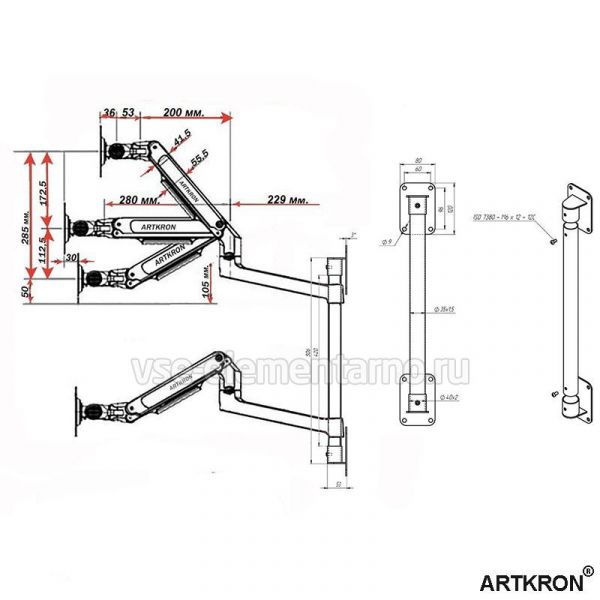 Кронштейн ARTKRON ART‑W242V обеспечивает множество вариантов позиционирования мониторов: