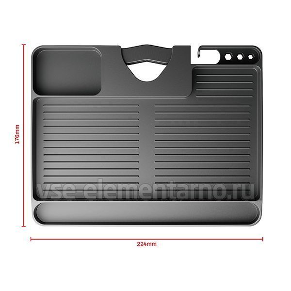 Размеры 224 x 176 мм позволяют без особых проблем разместить ваши устройства и максимизировать удобство вашего рабочего места. Наш органайзер может выдержать до 3 кг.