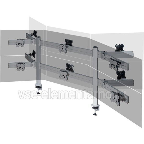 Настольный наклонно-поворотный кронштейн для двенадцати мониторов "спина-к-спине" с диагональю до 29 дюймов включительно с регулировкой по высоте.