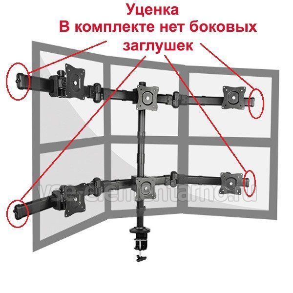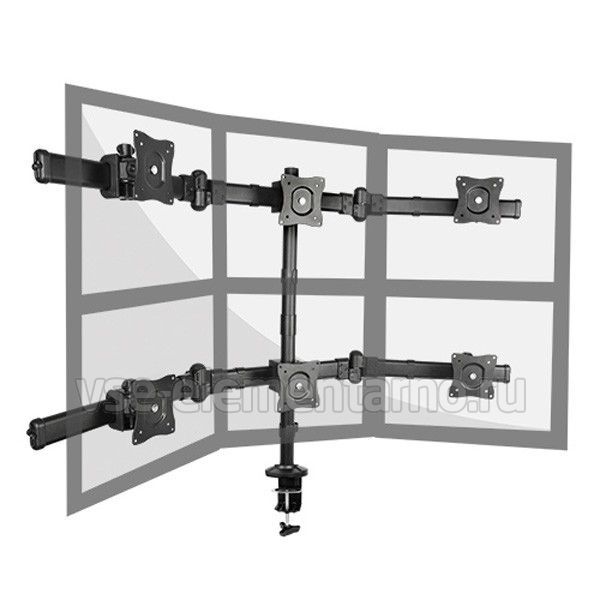 Настольный изогнутый панорамный кронштейн для шести мониторов с диагональю до 27 дюймов, расположенных в 2 ряда.