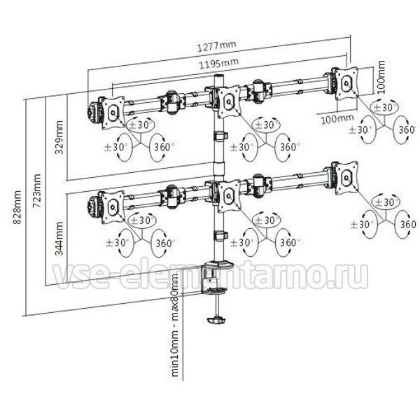 Кронштейн для 6 мониторов Resonans PS-900 рассчитан для установки на столешницах толщиной до 8 см. Кронштейн Resonans PS-900 позволяет оптимизировать рабочее пространство, легко настраивать положение мониторов для комфортной и результативной работы.