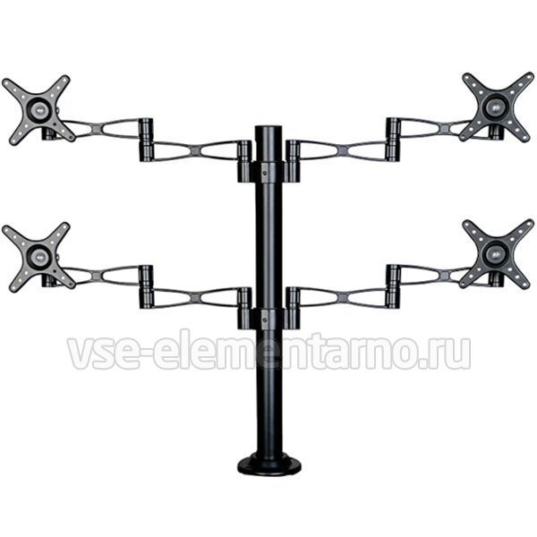 Настольный наклонно-поворотный кронштейн для четырёх мониторов с диагональю до 24 дюймов включительно с регулировкой по высоте.