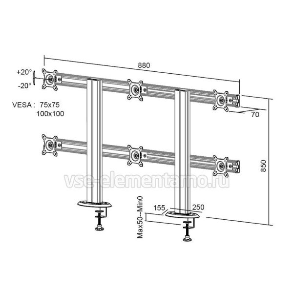 Настольный наклонно-поворотный кронштейн для 6-ти мониторов с диагональю до 32 дюймов включительно с регулировкой по высоте.