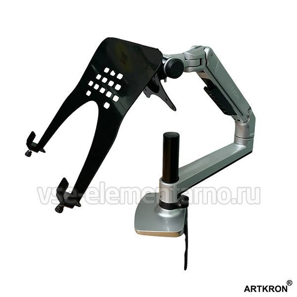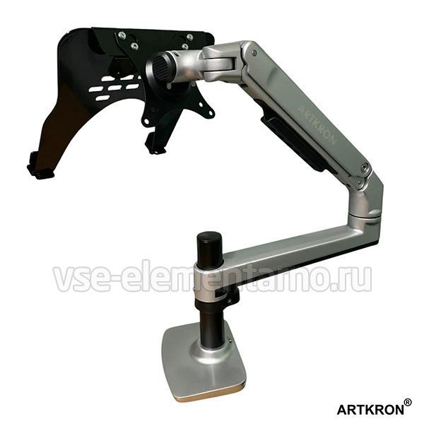 Настольный поворотно-наклонный кронштейн c регулировкой по высоте для монитора с диагональю до 32 дюймов включительно в комплекте с площадкой для ноутбука.