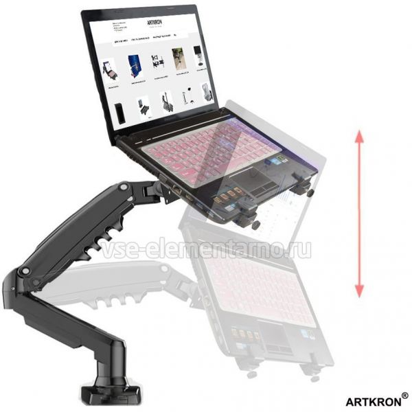 Настольный наклонно-поворотный кронштейн с регулировкой высоты + площадка держатель крепление для ноутбука ARTKRON Shelf-800.