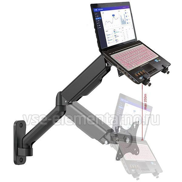 Настенный наклонно-поворотный кронштейн с регулировкой высоты + площадка держатель крепление для ноутбука ARTKRON Shelf-150.