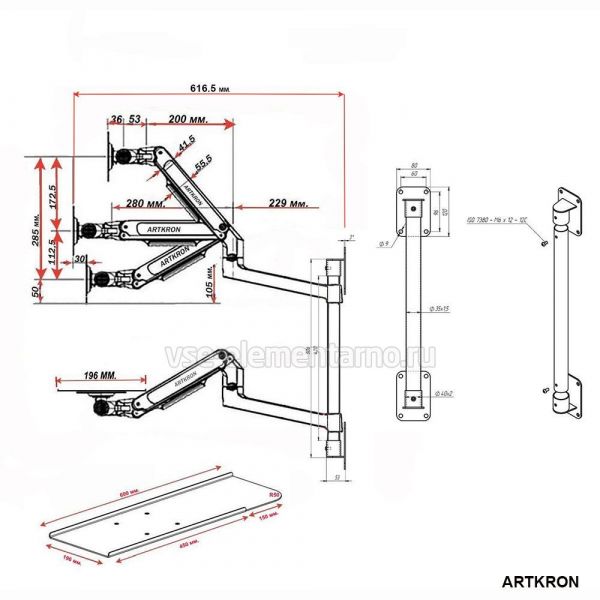 Комплект креплений для размещения монитора и клавиатуры ARTKRON SET-35 Кронштейн для монитора и клавиатуры позволяет оптимизировать рабочее пространство, легко настраивать положение монитора для комфортной и результативной работы.