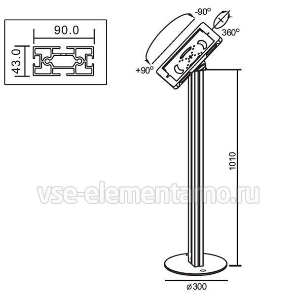 Напольная стойка 2MVESA MiniFit P100 для планшета iPAD 10.5” с запираемым замком в антивандальном исполнении разработана для использования в публичных местах. Устройство имеет металлическое основание, которое можно привинтить к полу. Колонна выполнена из прочного алюминиевого профиля. На вершине колонны находится металлический короб для установки в него планшета. Корпус запирается на замок для предотвращения несанкционированного доступа к устройству. Крепеж стойки позволяет вращать и наклонять экран в удобное положение для любого пользователя.