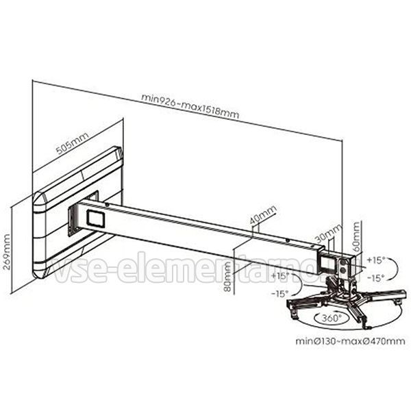Универсальное телескопическое настенное крепление для короткофокусных проекторов весом до 18 кг.