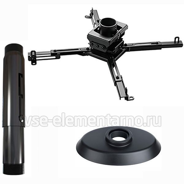 Универсальное потолочное крепление в черном цвете для проекторов весом до 35 кг c регулируемым расстоянием от потолка до проектора.