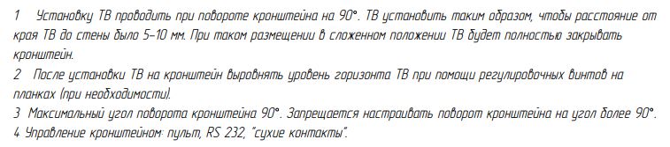 Электрический привод позволяет легко и плавно изменять угол поворота телевизора одним нажатием кнопки.