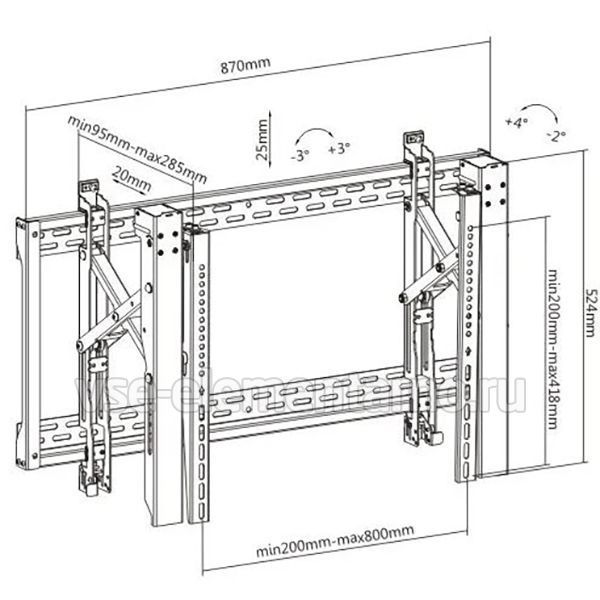 Механизм кронштейна FIX LVW06-48T позволяет выдвинуть его на расстояние от 95 до 285 мм от стены, что дает возможность подвести к дисплеям необходимые кабели. Благодаря открытому дизайну настенной пластины значительно облегчен доступ к дисплеям для их технического обслуживания.